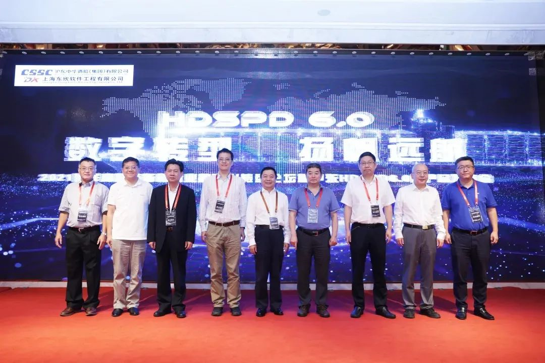 会上,对全新的三维设计平台HDSPD6.0进行了发布,公司总经理陈军、国家科技部高新司处长尉迟坚、上海市经信委领导、中船黄埔文冲船舶有限公司科技委主任王毅、中国造船工程学会秘书长王俊利、中国船舶集团战略规划部处长苏红宇、中国计算机学会副主任刘利刚、舟山宁兴船舶修造有限公司董事长王文彤、上海东欣软件工程有限公司总经理潘建辉共同按下发布按钮,正式开启HDSPD6.0赋能船企数字化转型升级新征程。