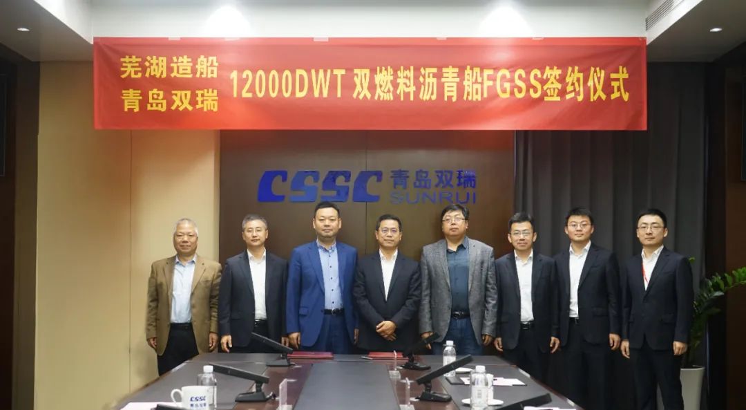 11月2日,青岛双瑞海洋环境工程股份有限公司与芜湖造船厂有限公司成功举行GasLink® LNG供气系统(FGSS)订单签订仪式。芜湖造船厂董事长、党委书记、总经理张钊,青岛双瑞公司总经理付洪田出席了本次签约活动。该系统将安装在加拿大知名船东McAsphalt委托芜湖造船厂建造的12000吨沥青/成品油船上。船舶交付后,主要用于加拿大沿海地区的沥青运输。此订单的签订,标志着由青岛双瑞自主研发的GasLink® FGSS设备实现首单突破,也标志着青岛双瑞在全球海洋环保领域“再下一城”。