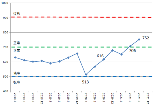 2021年三季度中国造船产能利用监测指数(CCI)为752点,比2020年三季度提高136点,同比增长22.1%;比2021年二季度增加46点,环比增长6.5%。