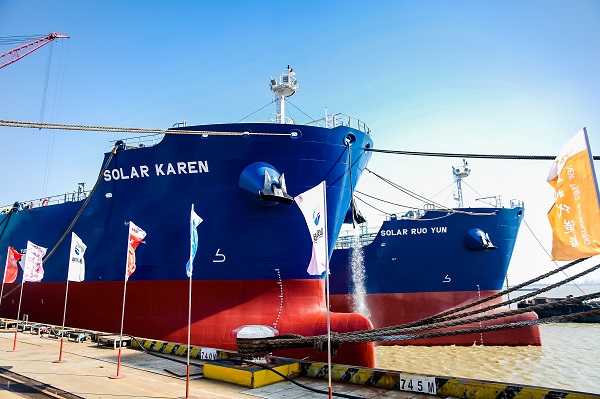 丹桂飘香,硕果累累,在这收获的季节,江苏新时代造船有限公司迎来了26#27#50000吨IMO Ⅱ型油化品船命名暨交付,这标志着该公司与山东海运“强强联合、做优做强”Solar合作项目——8艘IMO Ⅱ型油化品船完美收官。