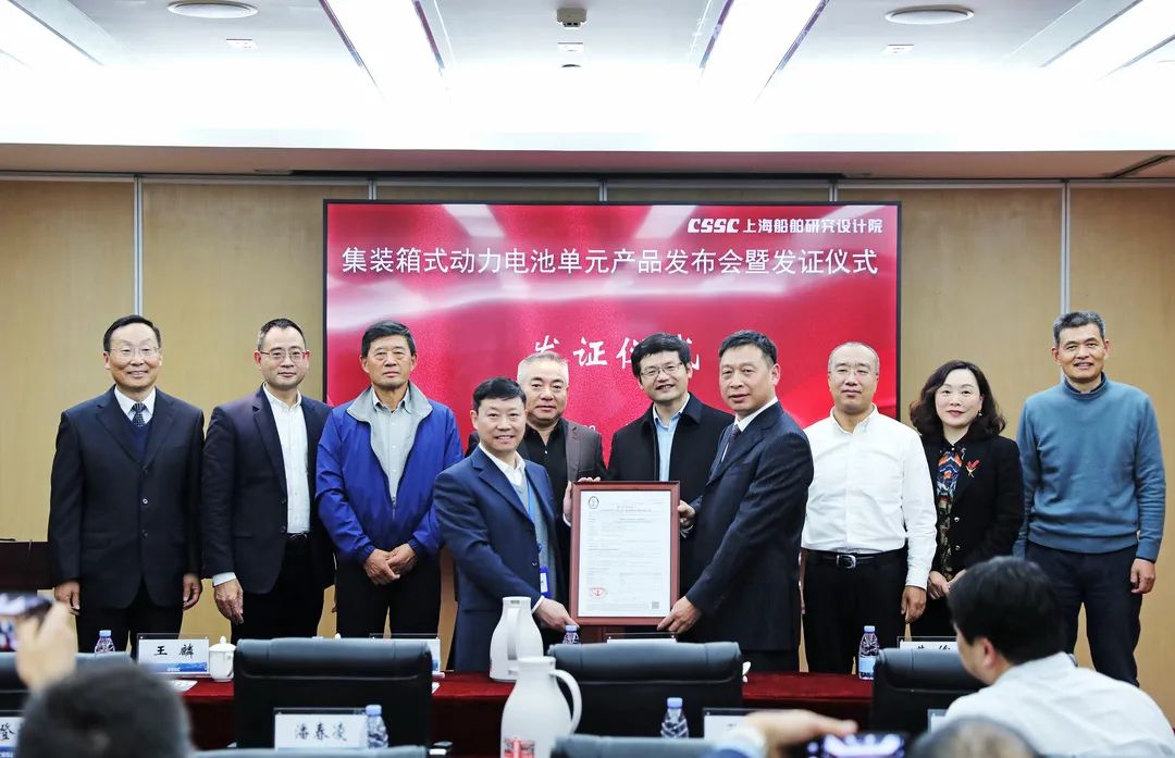 近日,由中国船舶集团有限公司旗下上海船舶研究设计院历时三年自主研制的我国首台套集装箱式动力电池单元(S-CUBE)产品发布会暨产品证书发证仪式在上海举行。中国船级社为上船院颁发了国内第一张集装箱式动力电池单元船用产品证书,标志着该装备已完全满足实船应用许可,将成为内河航运领域完备的零碳排放解决方案,其应用范围和市场前景十分广阔,有望引领内河绿色航运的新变革。