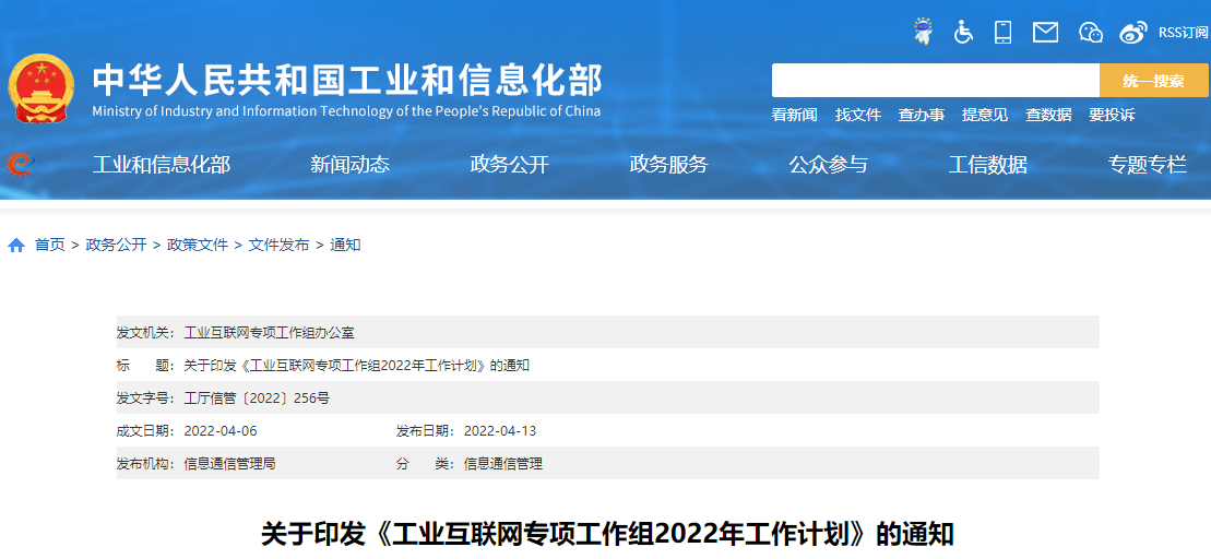 4月13日,工业和信息化部印发《工业互联网专项工作组2022年工作计划》(以下简称《工作计划》),围绕加快发展工业互联网,明确了15项重点工作83条具体举措。