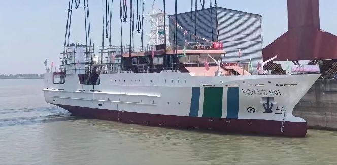 5月6日,江苏首艘近海生态环境监测执法船“中国环监苏001”在芜湖造船厂顺利下水。江苏省环境监测中心、中国船级社、中船科研中心和芜湖造船厂有关代表出席。