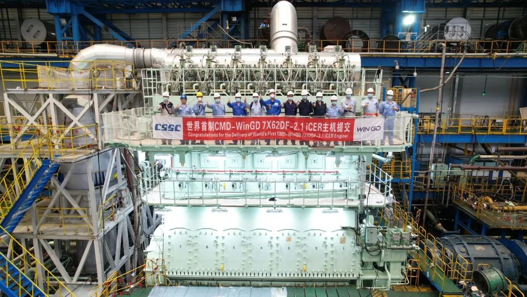 6月3日,中国船舶集团下属中船动力(集团)有限公司研制的全球首台带智能控制废气再循环(iCER)系统的双燃料主机7X62DF-2.1,在位于中国(上海)自由贸易区临港新片区上海中船三井造船柴油机有限公司完工交付。作为向二十大献礼的重点产品,她的研制成功,不仅丰富了我国双燃料主机的型谱,提升了市场竞争力,也标志着中国继全球最大船用双燃料低速机X92DF之后,在船用低速双燃料发动机研发制造领域继续保持了领先优势。