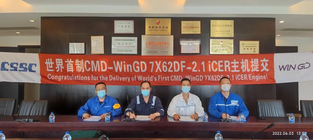 自5月10日起,中船三井一手抓疫情防控,一手抓整机试验,星夜兼程,精益管理,处处展现了专业、职业和敬业素养。积极协调各供应商,确保iCER系统、水处理系统和遥控系统的完整性供货。主动协同各服务商,确保主机在各种不同工况下的性能调试。主动联系落实船东、船级社和船厂代表提前进驻,深度参与验证、试验和交付,共同见证了全球首台CMD-WinGD 7X62DF-2.1主机的诞生,共享这一荣耀时刻。