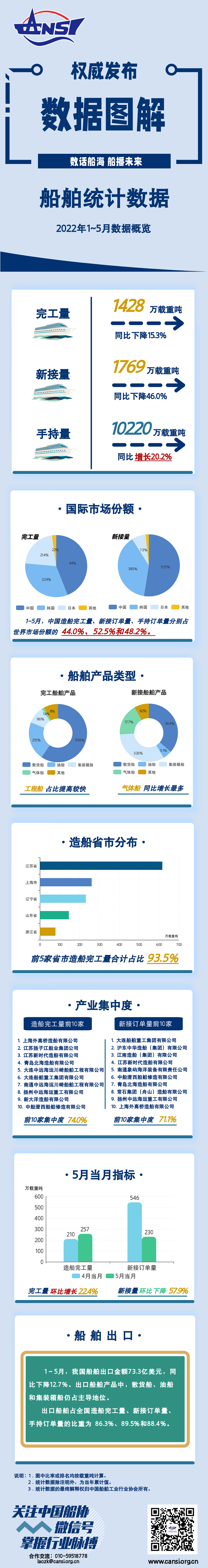 一图读懂丨2022年1~5月船舶统计数据