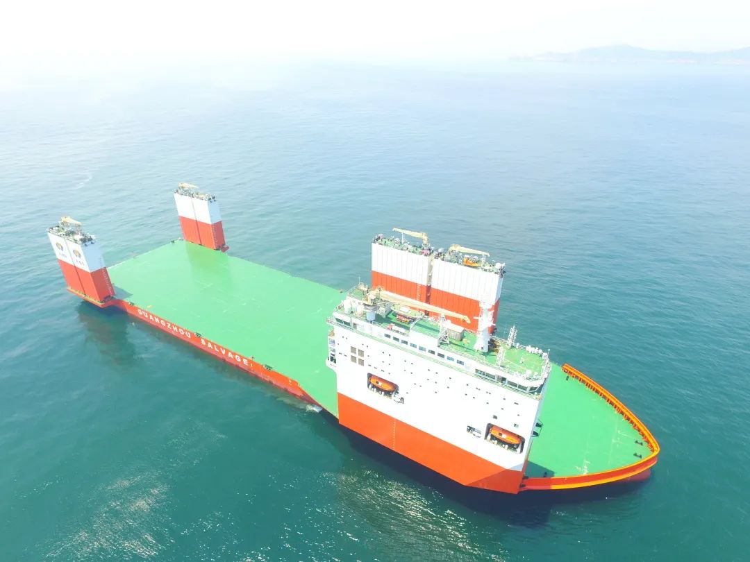 该船是招商工业海门基地承建的一艘集先进性、智能化、功能多样性于一体的新型半潜打捞工程船,具备防止海上油污染并兼顾海洋石油和天然气勘探、开采中所需的大型海上装备、大型船舶、舰艇的装载与运输等功能,满足10万吨级沉船的整体打捞以及在水上遇险的各类军事、民用船舶,器材,航空航天器等的抢险打捞。更是满足国家“海上应急抢险打捞”,服务“一带一路”、“海洋强国”和“交通强国”建设等重大战略意义的建设项目。