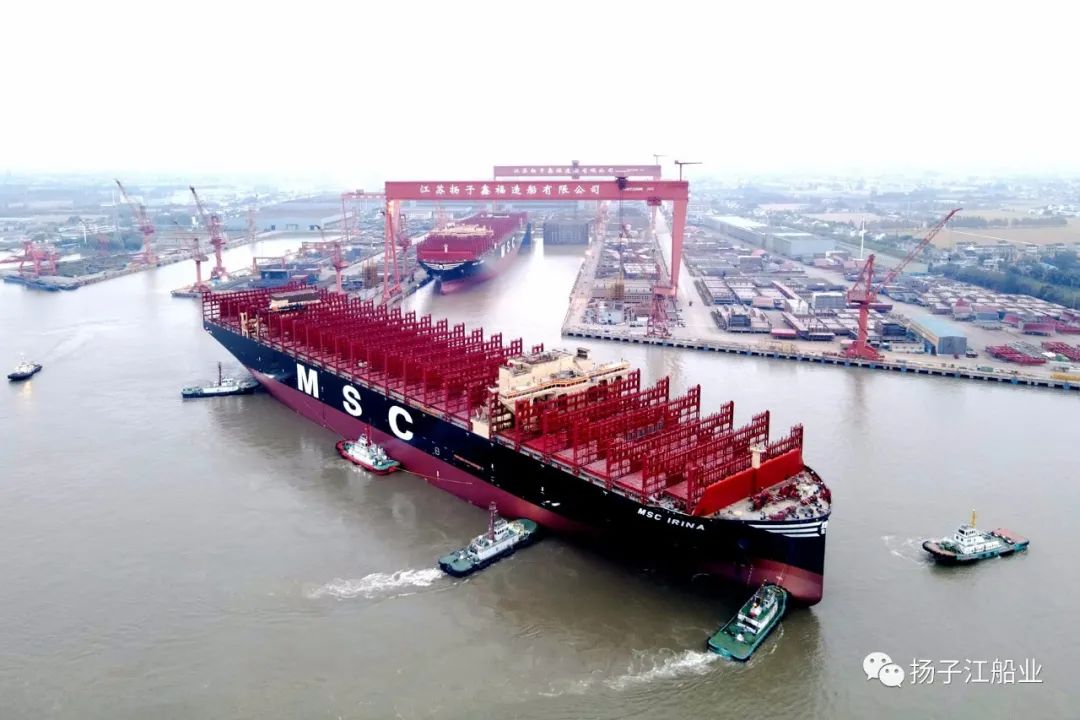 10月29日,扬子江船业集团旗下扬子鑫福造船分别为交银租赁、国银租赁、地中海航运(MSC)建造的两艘全球最大装箱量24000TEU超大型集装箱船顺利出坞。