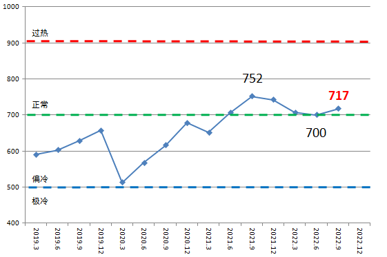 2022年三季度中国造船产能利用监测指数(CCI)为717点,处于正常区间。与去年同期752点相比,下降35点,同比下降4.7%;与二季度700点相比,回升17点,环比增长2.4%。