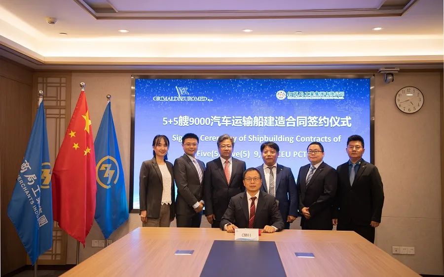 10月26日,意大利Grimaldi集团下属子公司Grimaildi Euromed与招商局重工(江苏)有限公司签订了5+5艘9000车汽车运输船(PCTC)建造合同,相关各方在中国、意大利等地以视频方式参加签约仪式。