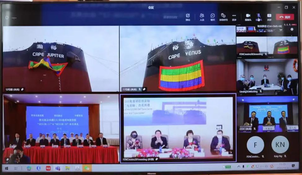 11月3日,中国船舶集团青岛北海造船有限公司和中船贸易作为联合卖方,为裕民航运建造的2艘21万吨散货船同日举行命名仪式。命名仪式以视频连线方式进行,裕民航运董事长徐旭东、总经理王书吉,新船命名人凌忠嫄、王真如在台北会场出席仪式,中船贸易副总经理吴爱军等在上海会场出席仪式,挪威船级社现场经理包青波,青岛北海造船党委书记、董事长陈埥,副总经理谷克超、陈卫平、杨树振等在青岛会场出席仪式。