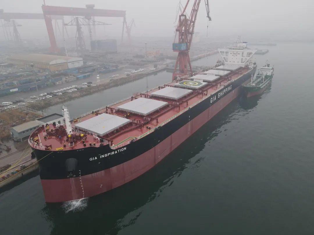 11月10日,大船天津为泰州嘉航海运有限公司建造的8.5万吨散货船1号船 以提前合同期141天的优异成绩顺利交付,标志着大船天津造船流程全线贯通。