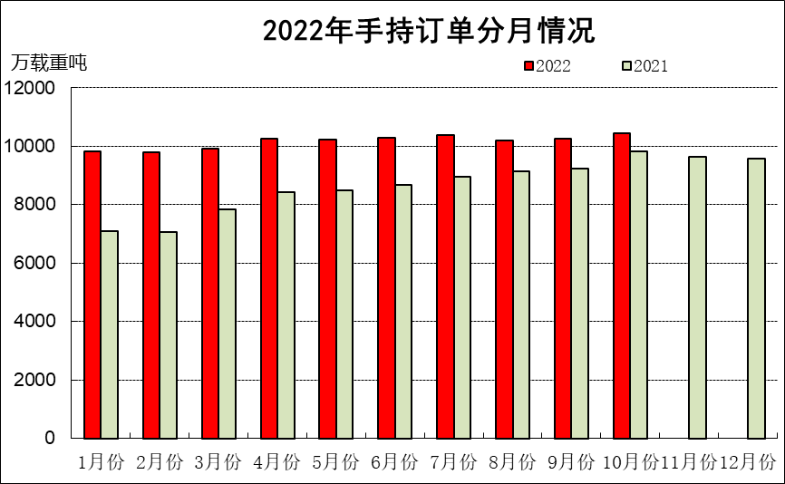 1~10月,50家重点监测的造船企业完工出口船2588万载重吨,同比下降13.4%;承接出口船订单3344万载重吨,同比下降39.3%;10月末手持出口船订单9334万载重吨,同比增长8.0%。出口船舶分别占重点造船企业完工量、新接订单量、手持订单量的88.5%、94.8%和92.0%。