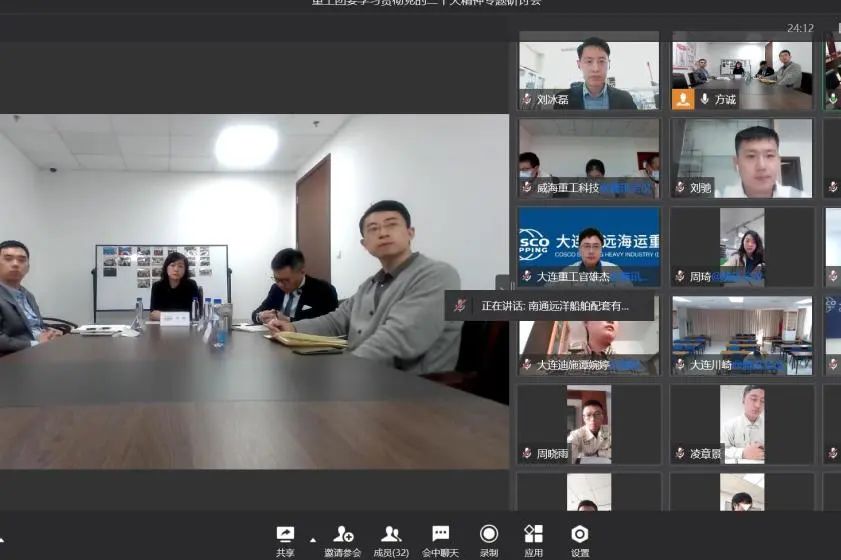 为认真学习宣传贯彻党的二十大精神,推动全系统团组织工作再上新台阶,11月8日下午,中远海运重工团委以视频会议形式召开学习贯彻党的二十大精神专题研讨会,并专项部署了学习贯彻工作。中远海运重工团委书记、党工部副部长梁静现场领学,重工团委委员、各所属企业团委书记、副书记参加学习研讨。