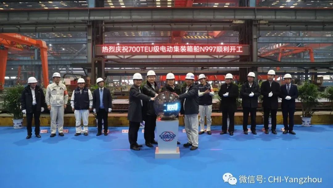 扬州中远海运重工首艘700TEU电动集装箱船开工建造
