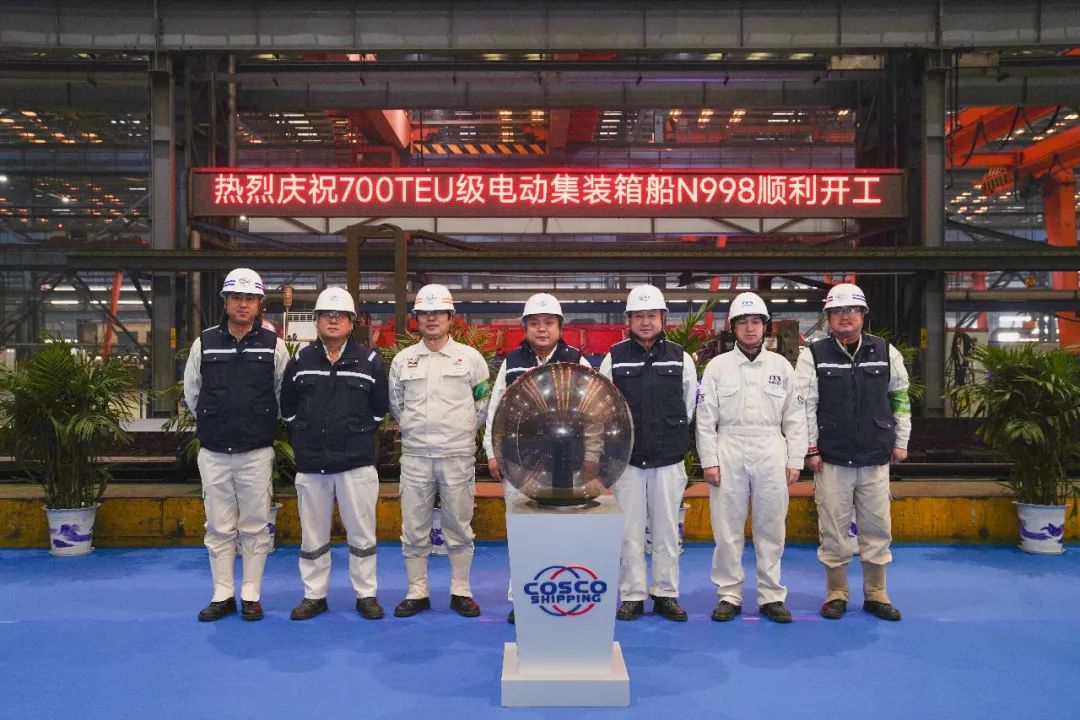 扬州中远海运重工又一艘700TEU电动集装箱船顺利开工