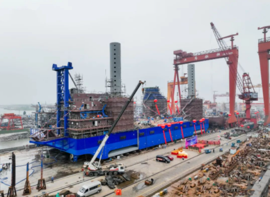 武汉船机总包的1200T风电安装平台顺利下水