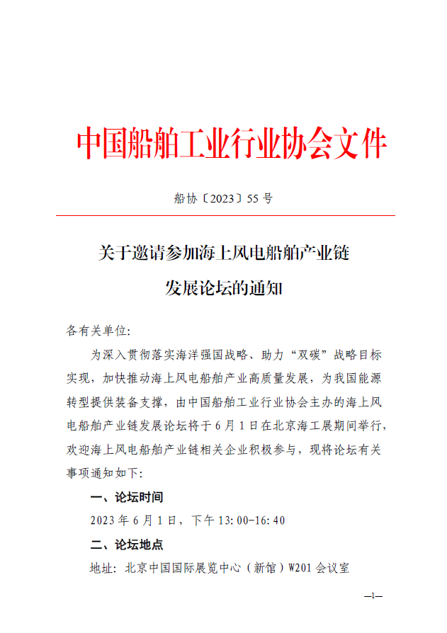 船协〔2023〕55号 关于邀请参加海上风电船舶产业链发展论坛的通知