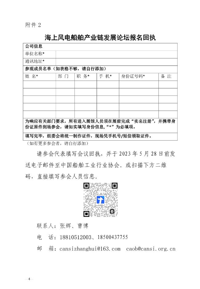 海上风电船舶产业链发展论坛参会报名表
