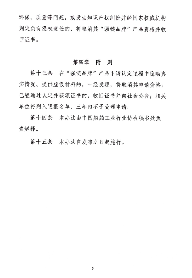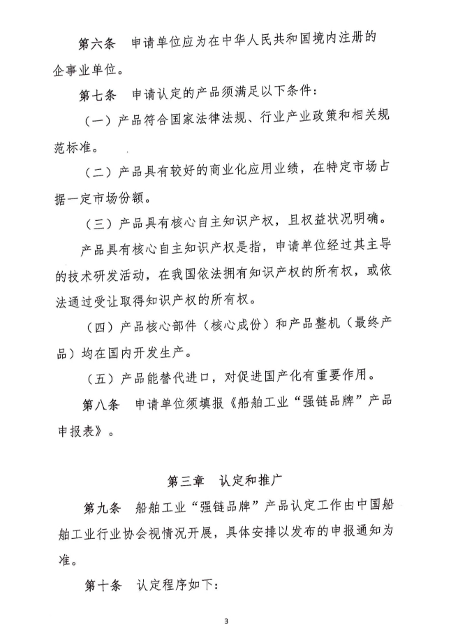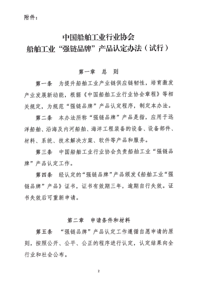 关于发布《船舶工业“强链品牌”产品认定办法(试行)》的公告