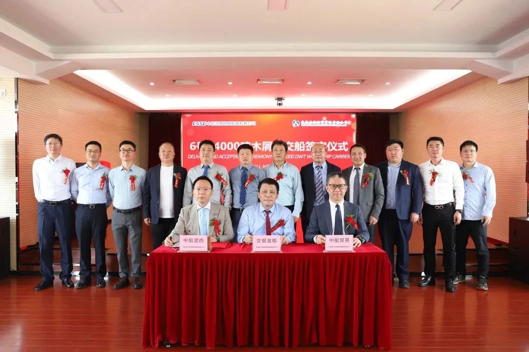5月15日上午10点18分,中国船舶集团旗下中船澄西船舶修造有限公司为交银金融租赁有限责任公司建造的64000吨木屑船“SDM TAICANG”轮较合同交船期提前77天在扬州胜利交付。交银金租航运租赁部航运资产部总经理梁苗、中国船舶工业贸易有限公司船海业务三部总经理荣耀,中船澄西总经理助理、扬州公司总经理罗伏祥以及相关领导、嘉宾出席交船签字仪式。