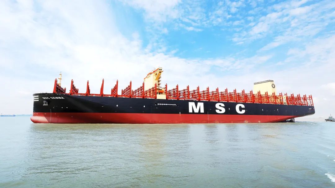 5月22日,中国船舶集团旗下沪东中华联合中船贸易为工银金融租赁有限责任公司和瑞士地中海航运公司(MSC)建造的全球最大级别24116TEU超大型集装箱船系列3号船“地中海 吉玛”号(MSC GEMMA),在中船长兴造船基地命名交付。这不仅是沪东中华在短短75天时间里完工交付的第3艘同系列船,进一步稳固了其世界超大型集装箱船建造领域的领军地位,也成就了MSC成为全球第一家运力突破500万TEU大关的集装箱航运公司。