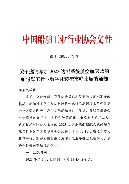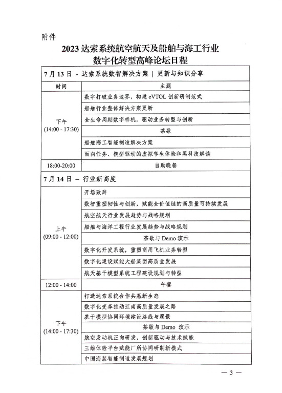 关于邀请参加2023达索系统航空航天及船舶与海工行业数字化转型高峰论坛的通知