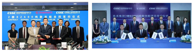 7月12日,中国船舶集团旗下中船澄西船舶修造有限公司联合中国船舶工业贸易有限公司与华夏金融租赁有限公司签订了2艘82600吨散货船建造合同。7月17日,中国船舶集团旗下中船澄西船舶修造有限公司联合中国船舶工业贸易有限公司与香港良禾海运有限公司签订了2艘82600吨散货船建造合同。