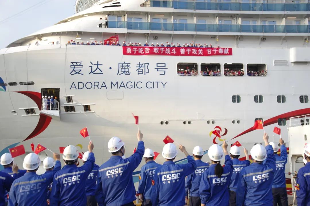 “爱达·魔都号”是我国自主建造的首艘大型邮轮,总吨位达13.55万吨,拥有2826间舱室,可容纳6500多人,被誉为“移动的海上城市”。2019年10月21日,我国首艘国产大型邮轮正式开工建造。2020年11月10日,首制大型邮轮开始坞内连续搭载 。2021年10月18日,我国首制大型邮轮实现船体结构贯通。2021年12月17日,首制大型邮轮实现坞内起浮里程碑节点。2023年6月2日,船坞内完成注水,邮轮起浮,为出坞作准备。2023年6月6日,我国首艘国产大型邮轮爱达·魔都号正式出坞,准备两次试航。