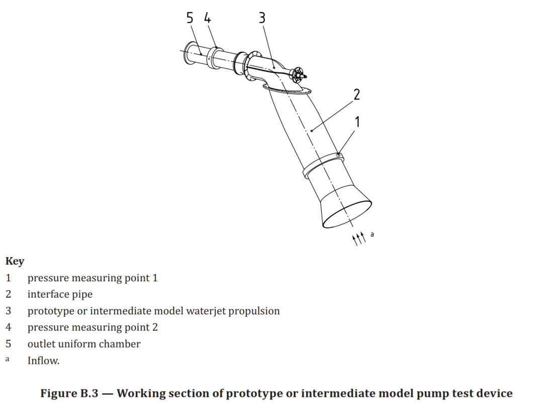 ISO 4679:2023该标准针对科学研究和出厂验收两种不同用途,将喷水推进水力性能试验划分为A级和B级两种精度等级,并对二者的测量结果不确定度要求、验收准则等分别进行了规定。此外,该标准还对喷水推进水力性能试验的试验环境、试验过程和测量系统提出了必要的规定和要求,并推荐了常见的试验装置。