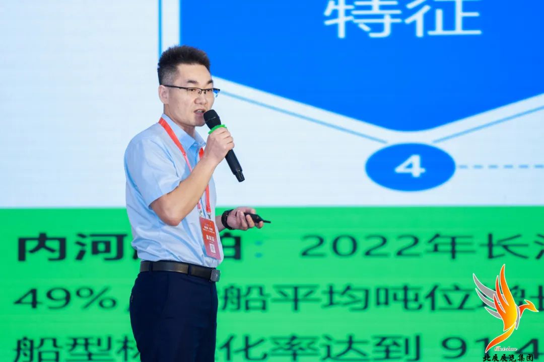 武汉长江船舶设计院有限公司副总经理汤文军在《内河绿色智能船舶研发思考》的报告中以大量详实的数据介绍了内河船舶在绿色智能化发展上的进步,介绍了“新长江26007” “江远百合”“三峡氢舟”等10多型内河绿色智能船舶的典型案例,对内河船绿色智能化发展路径提出了独到的思考。