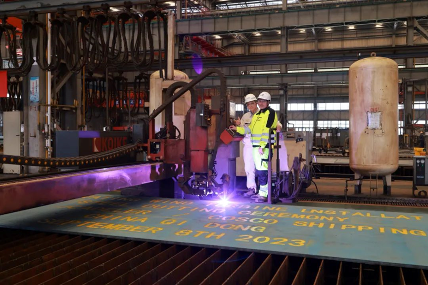 启东中远海运海工举行N1130自升式风电安装船开工仪式