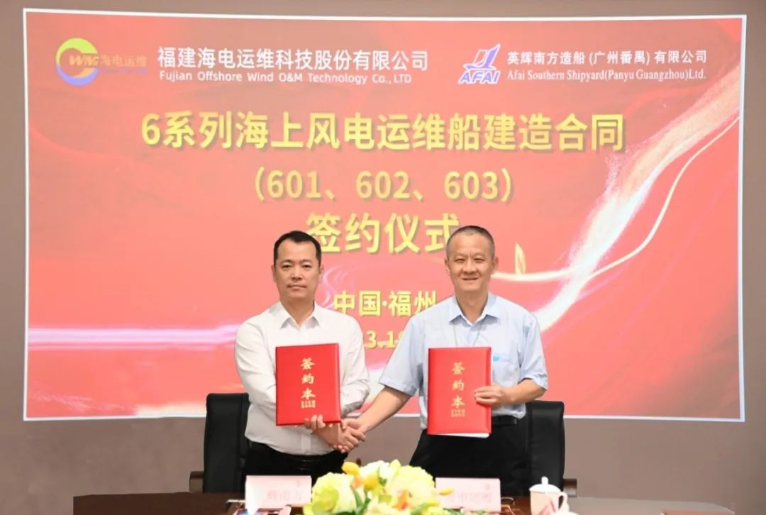 2023年10月10日,海电运维与英辉南方公司在福州举行了“海电运维6系列”高速运维船建造合同签约仪式。