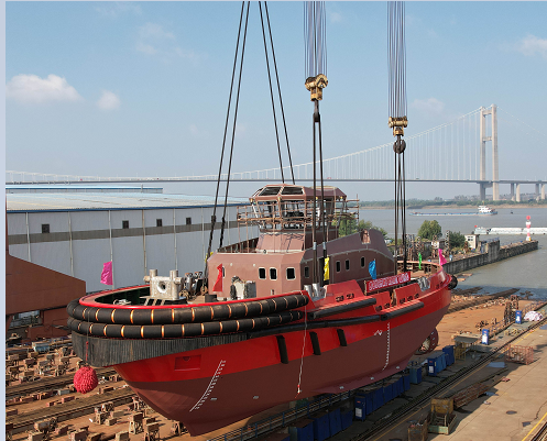 自主伴航智能拖轮在镇江船厂顺利下水