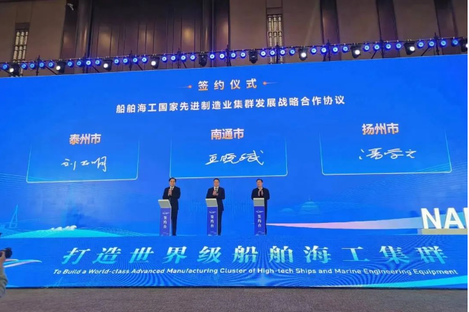 胡广杰说,近年来,江苏以培育国家级船舶海工集群为重要抓手,集聚各类要素资源,加快提升创新能力,持续优化结构布局,形成了南通海工装备和豪华邮轮、泰州大型油船和集装箱船、扬州大型散货船和滚装船等特色基地。我省将紧紧围绕打造具有全球影响力的产业科技创新中心和具有国际竞争力的先进制造业基地目标,更好发挥南通、泰州、扬州海工装备和高技术船舶国家先进制造业集群引领带动作用,瞄准高端化、智能化、绿色化方向,着力提升集群规模和竞争力、攻关关键核心技术、营造创新生态体系、扩大对外交流合作,持续促进船舶海工产业高质量发展,加快迈进船舶海工装备制造世界先进行列。