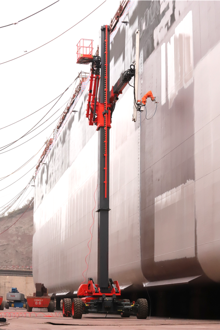 2017年,万邦重工成功研发、应用并向修船行业分享真空超高压水射流船舶防腐预处理整套解决方案。在此基础上,2021年末,万邦重工联合浙江鼎力,对船舶涂装高空作业智能承载装备(大象)和防腐喷涂机器人进行了专业化、标准化以及新型智能化方面的系统优化设计。在合作双方技术研发团队精诚合作下,新一代智能承载装备和喷涂机器人产品取得了重大技术进步和创新成果,在浙江鼎力下线进入试用与技术完善阶段,目前已具备量产、迭代升级和覆盖市场需求的条件。