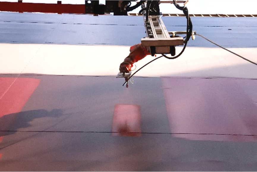“象群”系列机器人突破了自动喷涂过程中的靶向跟踪、启停惯性、时间差补偿等关键技术,实现了喷涂轨迹自运行控制、喷枪与作业面之间全时段保持垂直且恒定距离、换线喷涂无延时等功能,确保了喷涂过程中漆膜厚度标准且均匀,自动连续喷涂速率不低于450平方米每小时。另外,其喷枪前端加装的漆雾捕捉装置,既解决了人工喷涂过程中漆雾无组织飞散的问题,也解决了风力对喷涂质量的影响。
