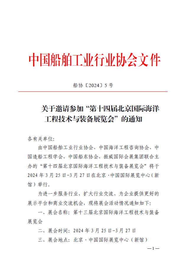 关于邀请参加“第十四届北京国际海洋工程技术与装备展览会”的通知