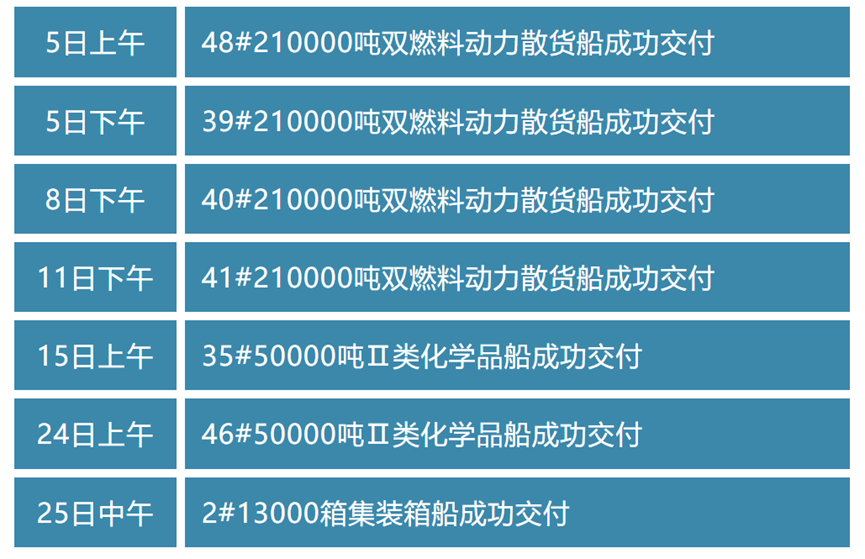 1月25日,新时代造船迎来新年第七艘船舶——2#13000箱集装箱船成功交付。至此,公司月内实现完工交付船舶7艘,计108万载重吨,创下了单月交船数、载重吨量最高的新纪录。