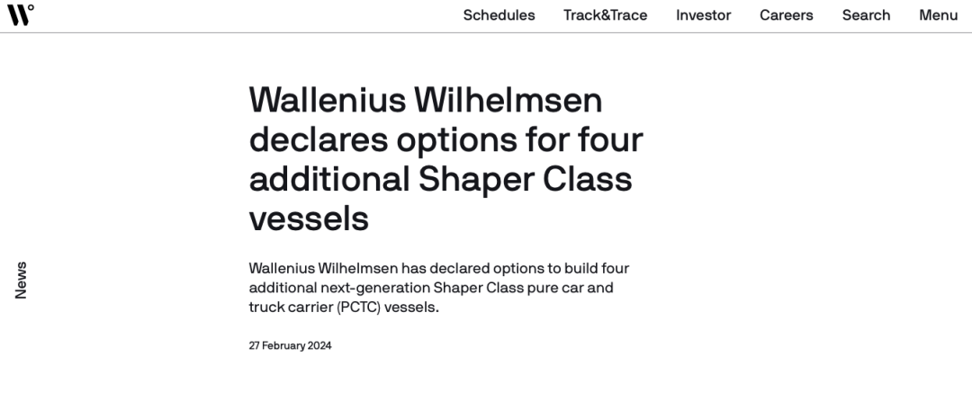 Wallenius Wilhelmsen公司官网消息截图