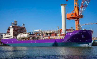 该船出坞后将开展水下系泊试验,正式交付后将应用于欧洲二氧化碳捕捉及储存计划,收集欧洲工业产生的二氧化碳,运至挪威西海岸地区二氧化碳接收端码头加以处理后注入海底地下2600米永久封存。作为目前全球首个专业服务于海洋碳运输与封存的船舶,将为全球解决陆地二氧化碳排放的模式起到引领和示范作用,也将成为大连造船绿色转型的标志性产品。