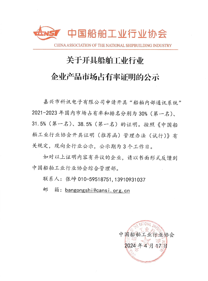 关于开具船舶工业行业企业产品市场占有率证明的公示