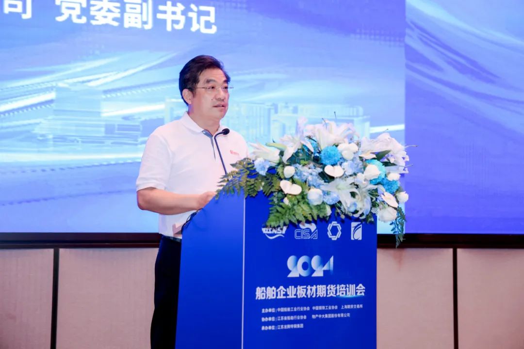 8月16日,由中国船舶工业行业协会、中国钢铁工业协会和上海期货交易所主办,江苏省船舶工业行业协会、物产中大金属集团有限公司协办,江苏龙腾特钢集团有限公司承办的2024年船舶企业板材期货培训会在江苏省常熟市召开。会议旨在进一步加强船舶企业了解和运用期货工具抵御行业周期性波动的能力,提高通过套期保值应对价格波动的实操能力,助力企业稳健经营和行业可持续发展。中国船协副秘书长谭乃芬主持会议,龙腾特钢党委副书记朱永坤致辞,来自骨干船舶企业、钢铁企业、钢贸公司、期货公司、研究单位以及行业协会的120余名专家参会。