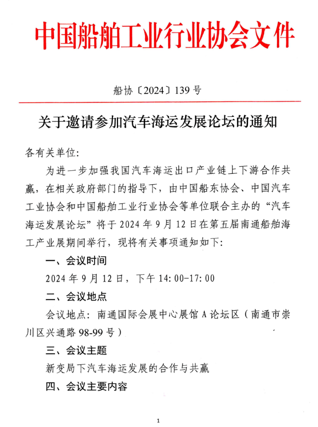 关于邀请参加汽车海运发展论坛的通知