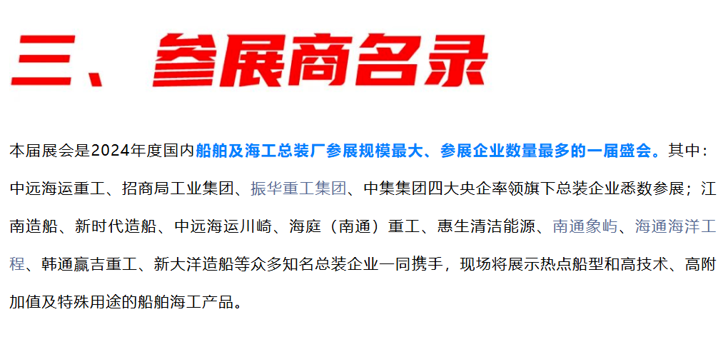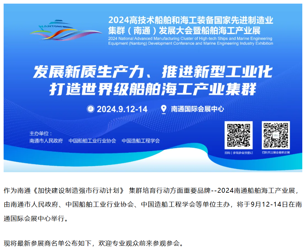 400余家海内外参展企业邀您参观2024南通船舶海工产业展 同期多场会议活动欢迎报名