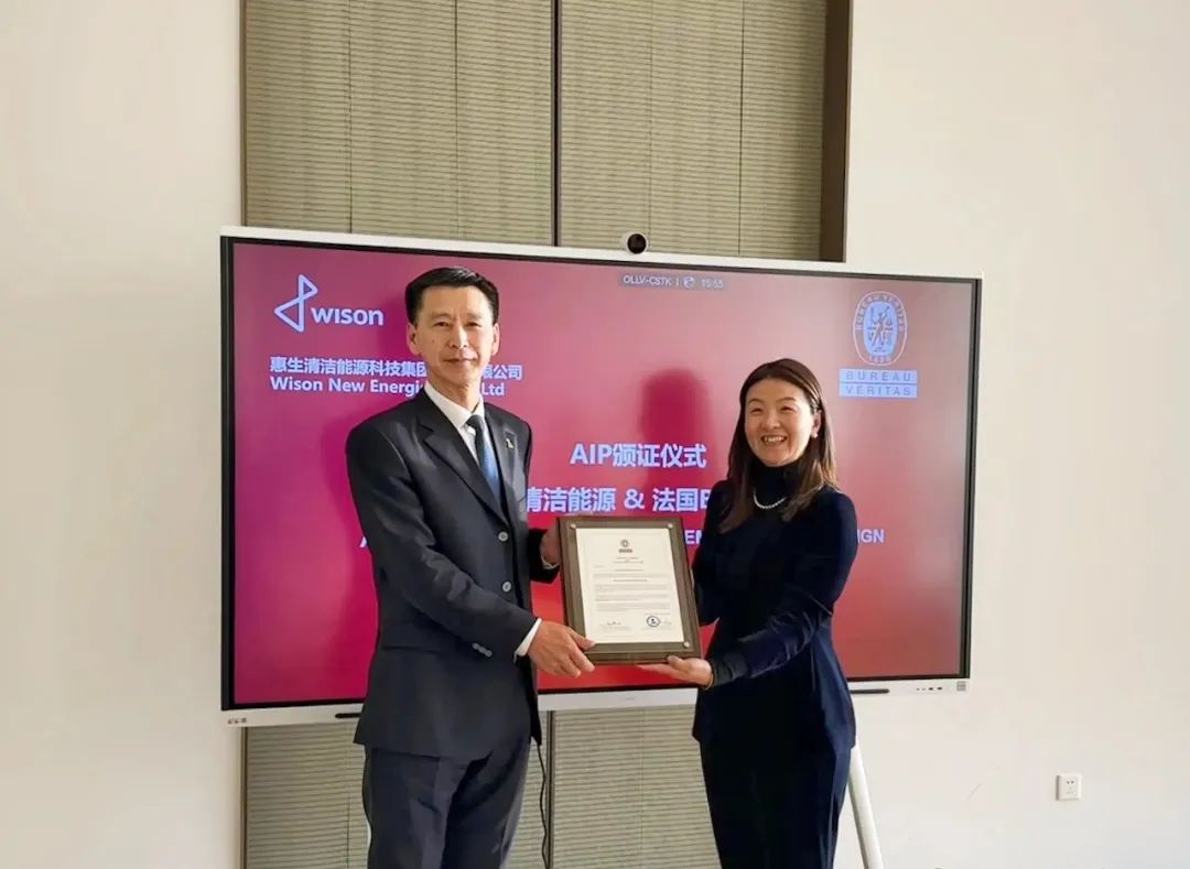 2024年11月27日,惠生清洁能源研发的“惠生低碳FPSO FEED项目”获得法国船级社(BV)的原则性批准(AIP)。法国船级社中国区运营总监衣高洁为惠生清洁能源颁发证书。