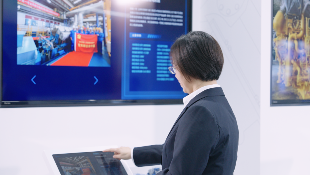图:时任中船动力集团沪东重机有限公司副总经理徐雷在浏览发动机产品迭代里程牌