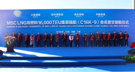 中船天津16000TEU双燃料集装箱首制船交付