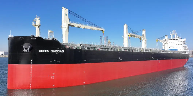 近日,中国船级社(CCS)审图和检验的77000吨系列多用途纸浆船“GREEN QINGDAO” 轮顺利交付命名。