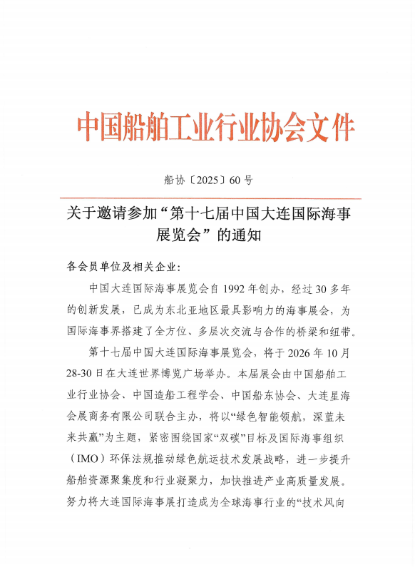 关于邀请参加“第十七届中国大连国际海事展览会”的通知